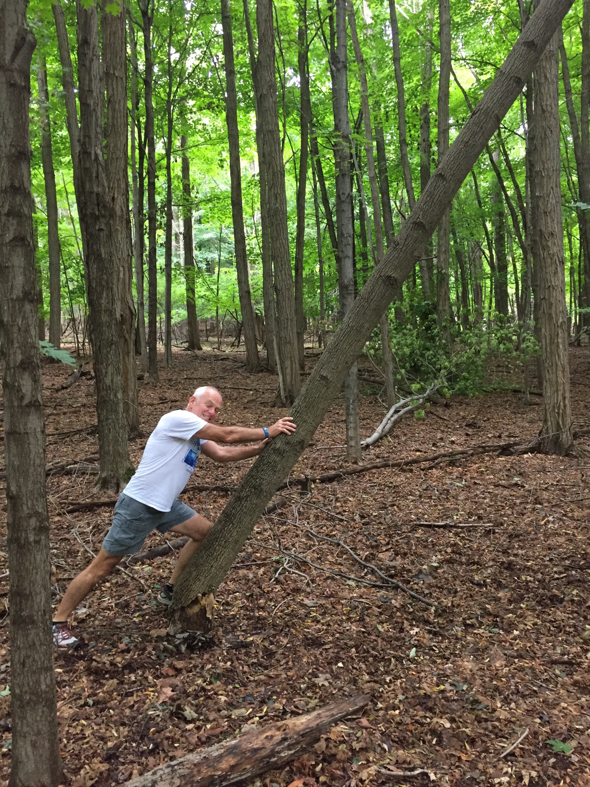 Took a couple hikes through the local woods, where I learned to push over dead trees.